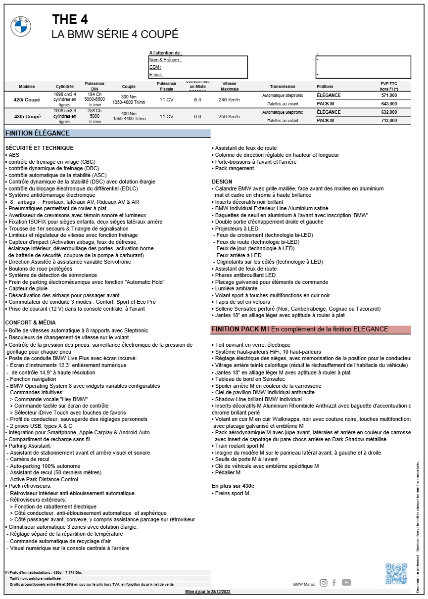 | Modèle | Série 4 Coupé |
